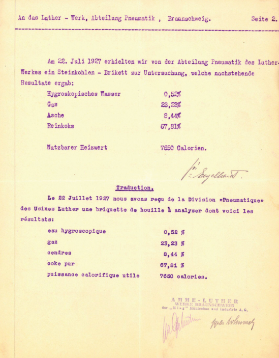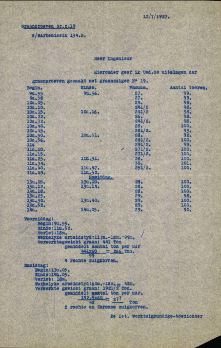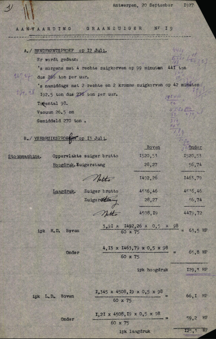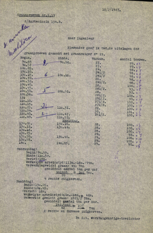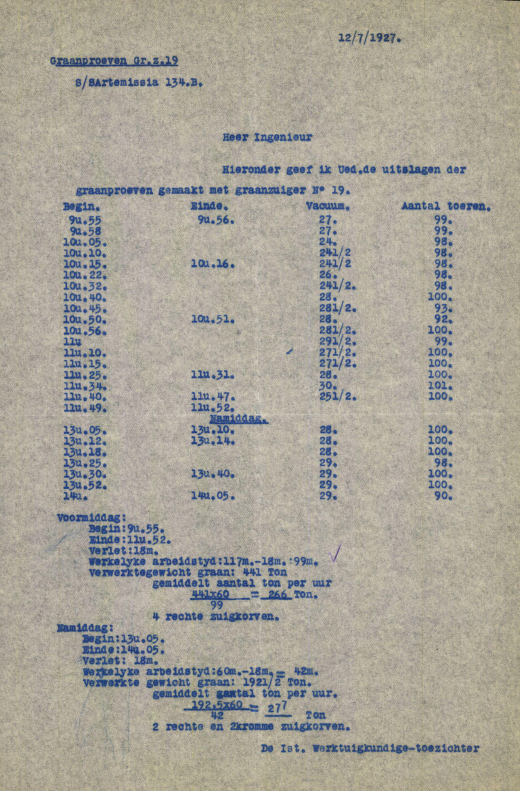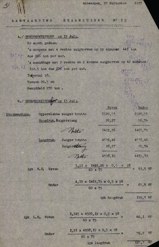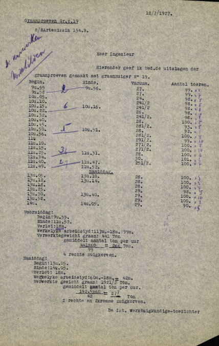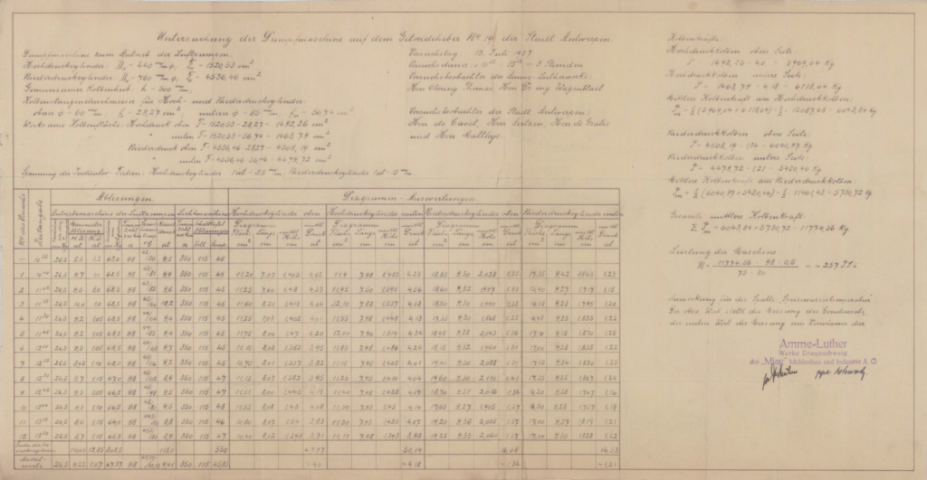 Amme Luther Werke verrichtte deze proeven en deed daar verslag van. Beproefd werd onder andere de werking van de hoofd stoommachine; drukken per cilinder, rendement, et cetera. En niet onbelangrijk wordt de gevraagde overslagcapaciteit wel geleverd?